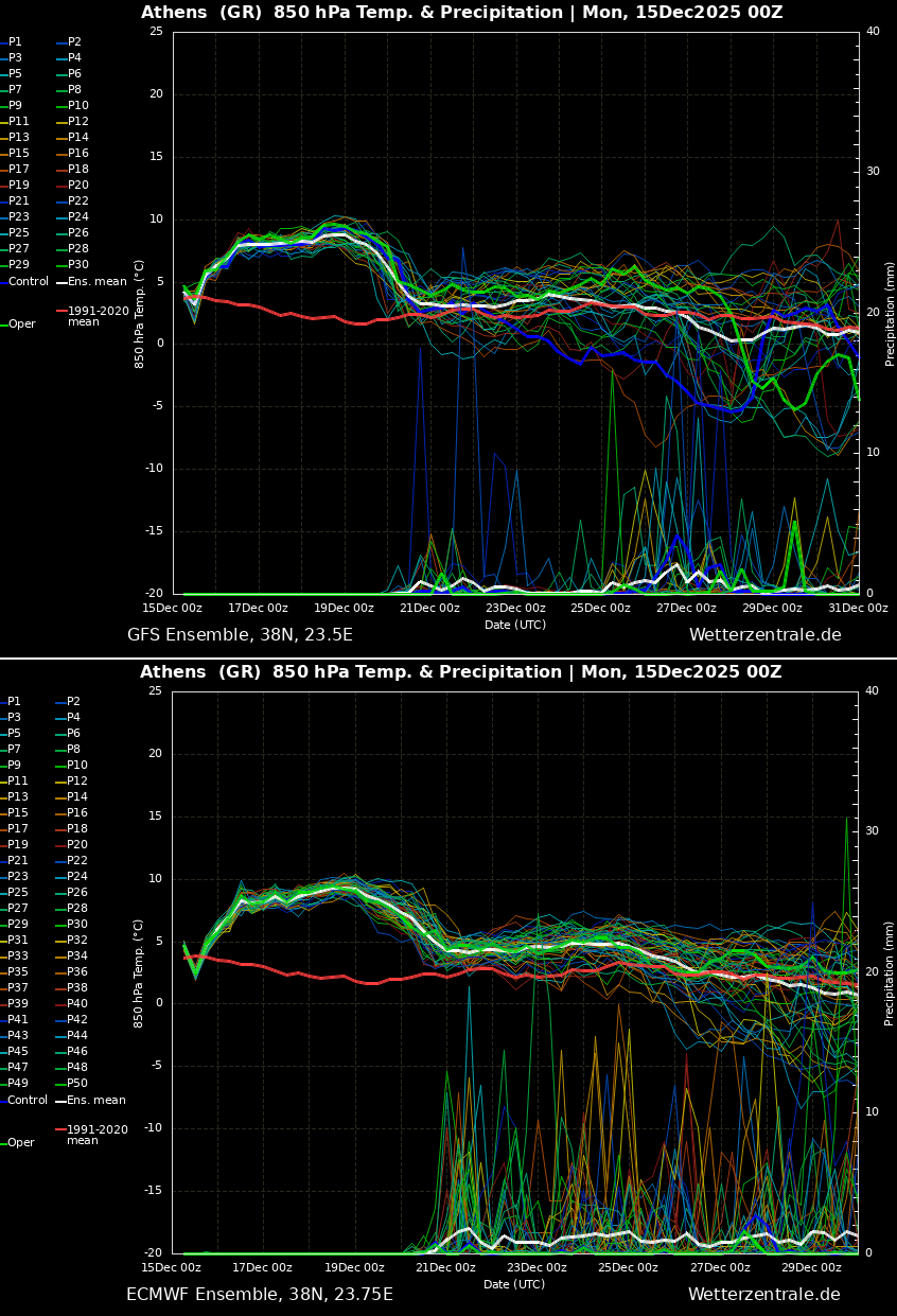 Βάσει GFS & ECMWF Ensembles (15/12/2025)
