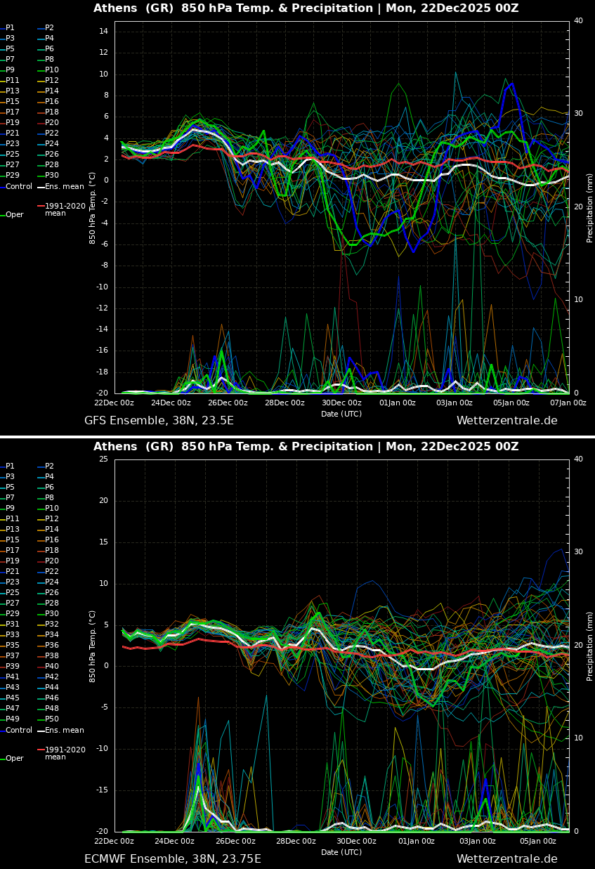 Βάσει GFS & ECMWF Ensembles (22/12/2025)