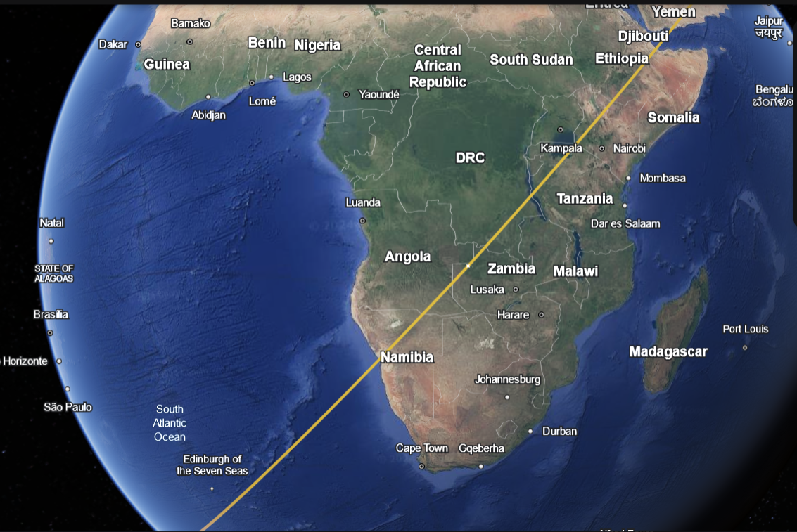 Εικονα 1. Άξονας επιρροής ηλιακής έκλειψης 2ας Οκτωβρίου 2024